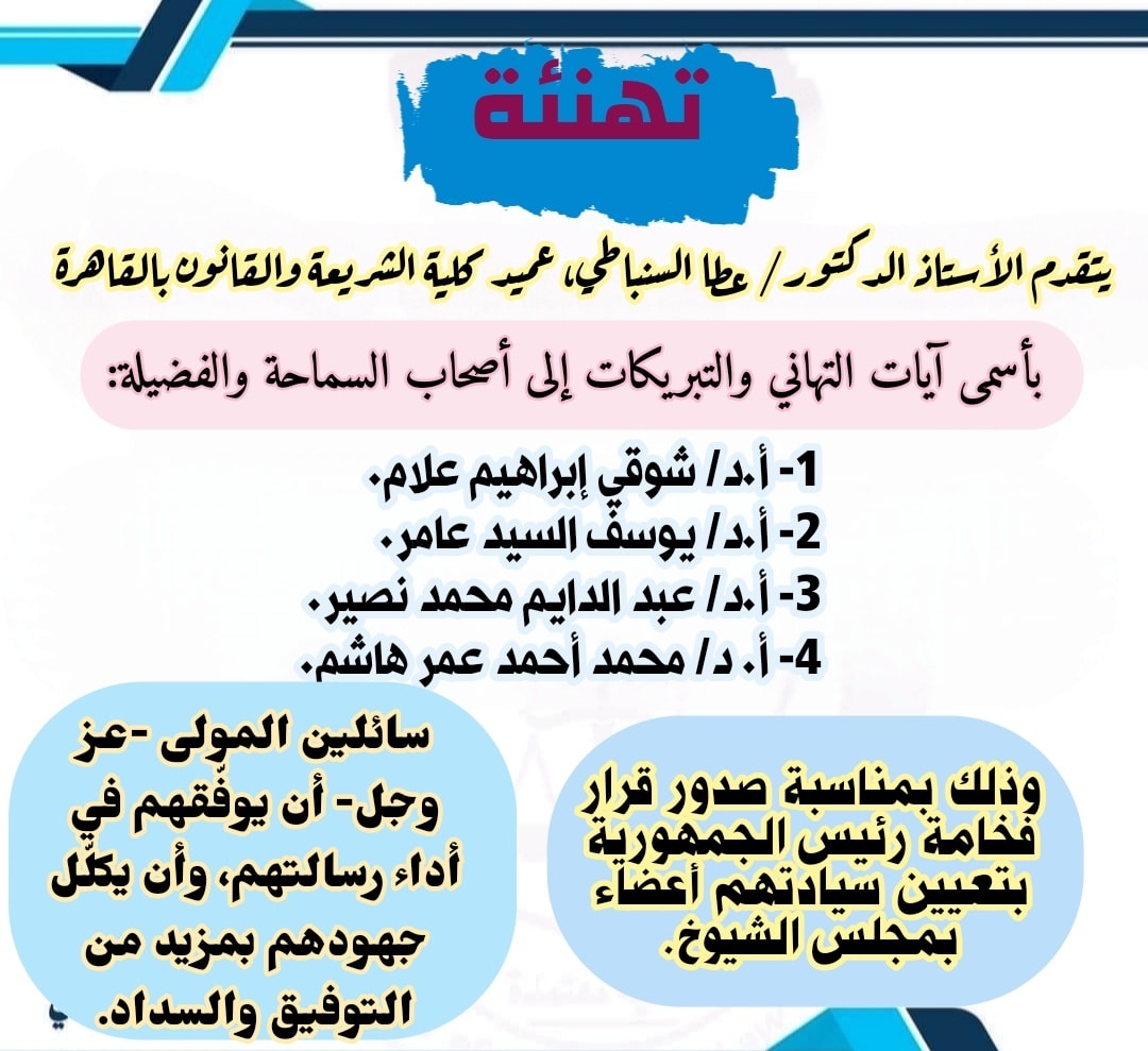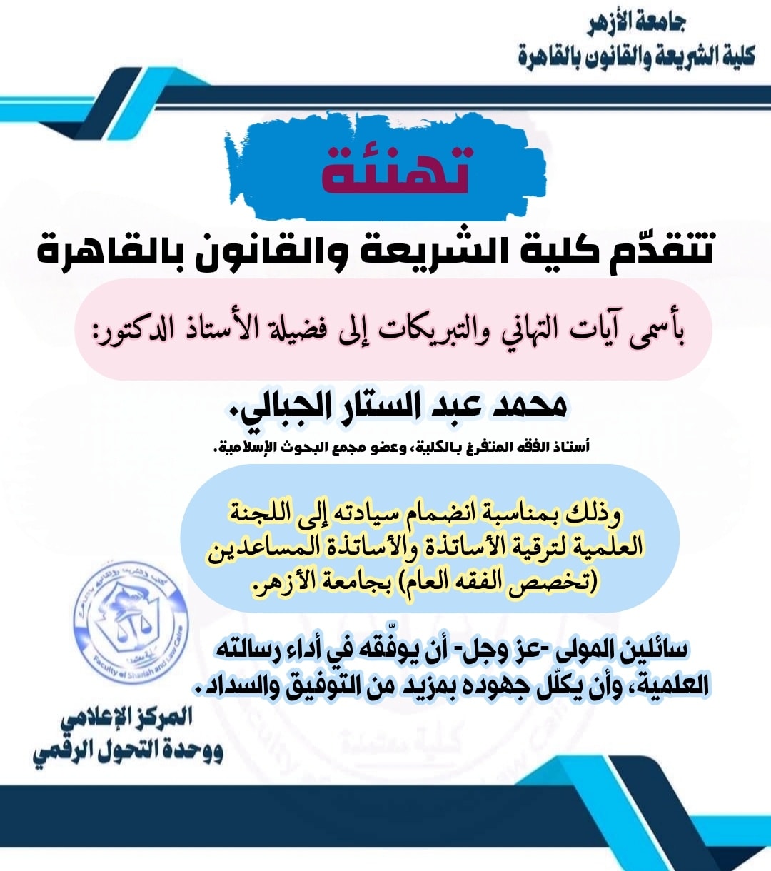 قراءة المزيدبمناسبة انضمام سيادته إلى اللجنة العلمية الدائمة لترقية الأساتذة والأساتذة المساعدين (الفقه العام)